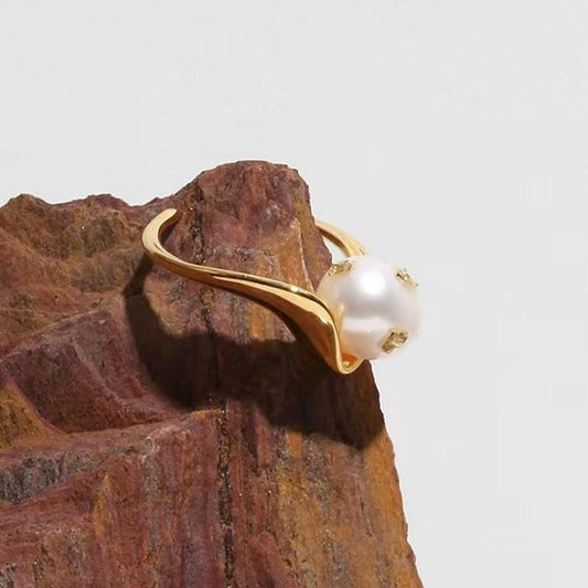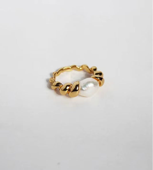 Genuine Freshwater Baroque Pearl Gold Grain Ring