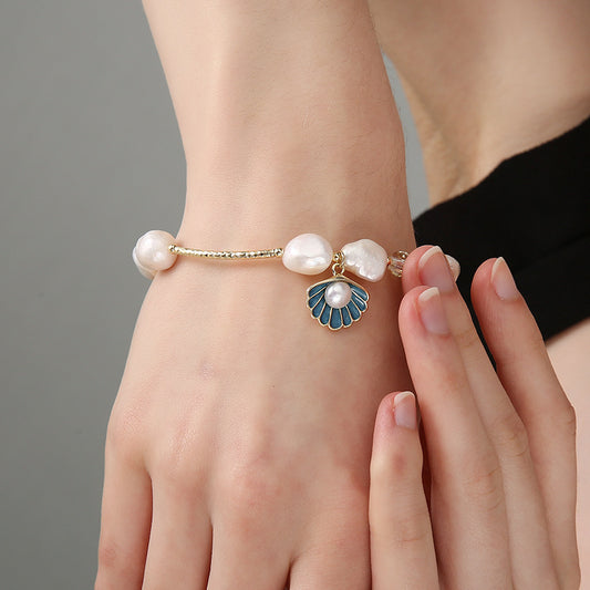 Genuine Freshwater Pearl Solid S925 Silver Shell Bracelet