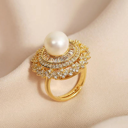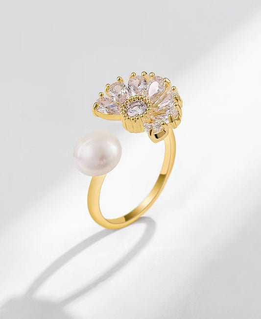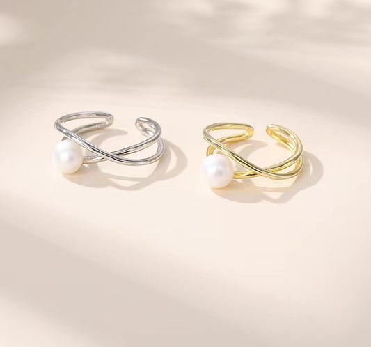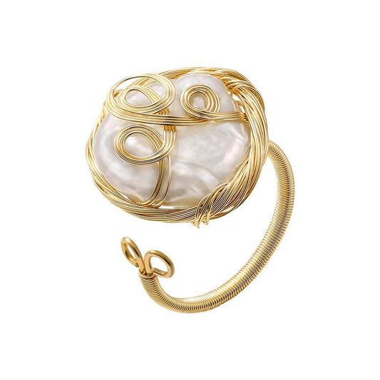 Genuine Freshwater Baroque Pearl Water Wave Ring