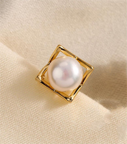 Genuine Freshwater Pearl Golden Cube Earrings