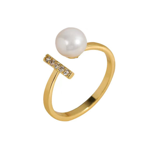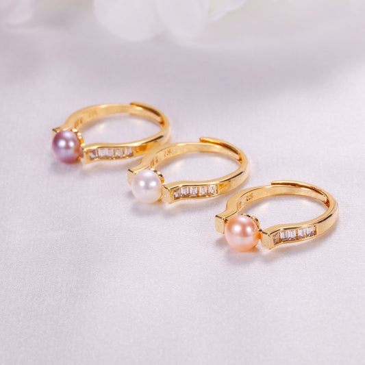 Brass Plated with 18K Gold Genuine Freshwater Pearl Ursula Ring