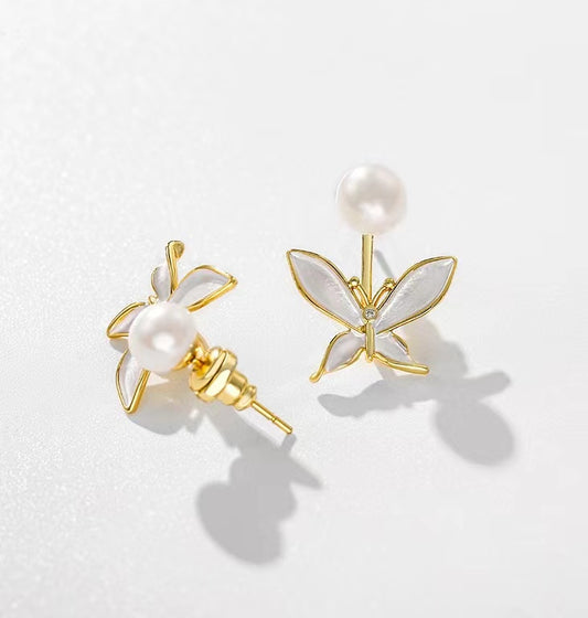 Genuine Freshwater Baroque Pearl Flying Flowers Earrings