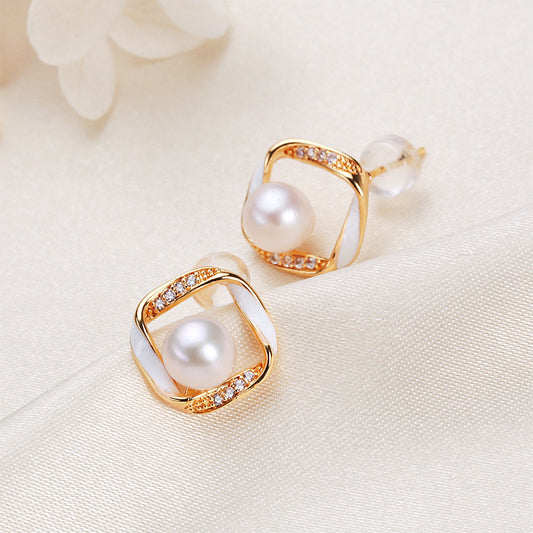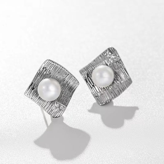 Genuine Freshwater Pearl Block Vortex Earrings