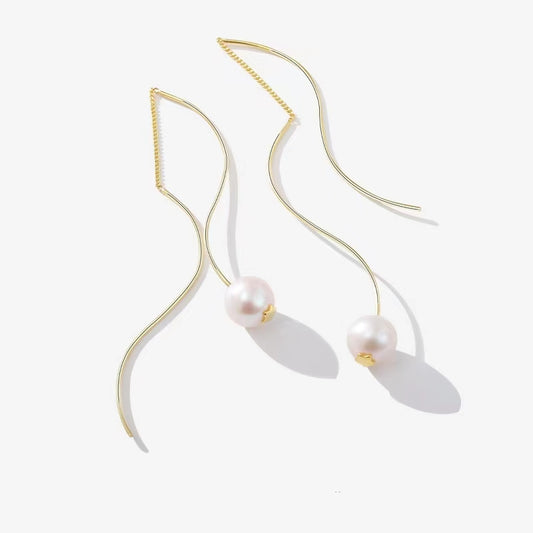 Genuine Freshwater Pearl Solid S925 Silver Streamline Earrings