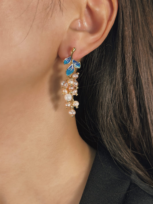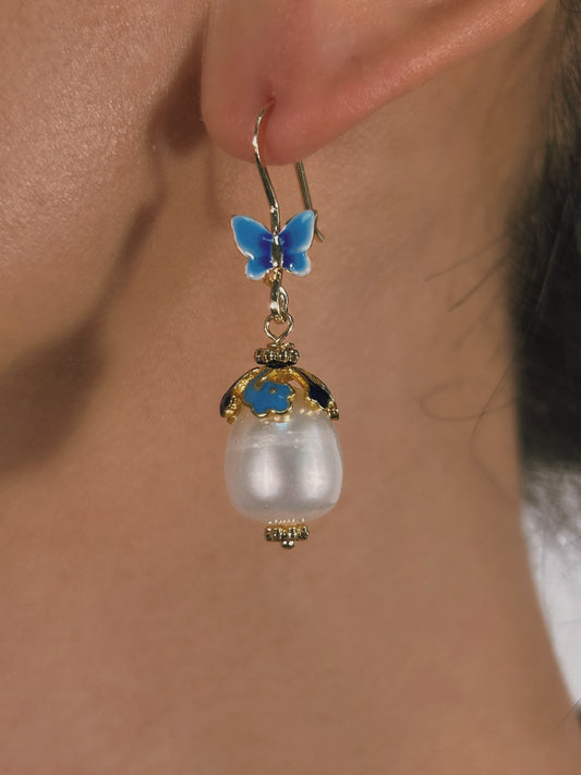 Genuine Freshwater Baroque Pearl Blue Butterfly Earrings (Limited Edition)