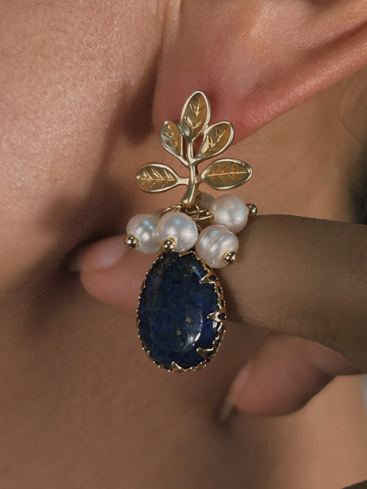 Genuine Freshwater Baroque Pearl & Lapis Lazuli Earrings (Limited Edition)