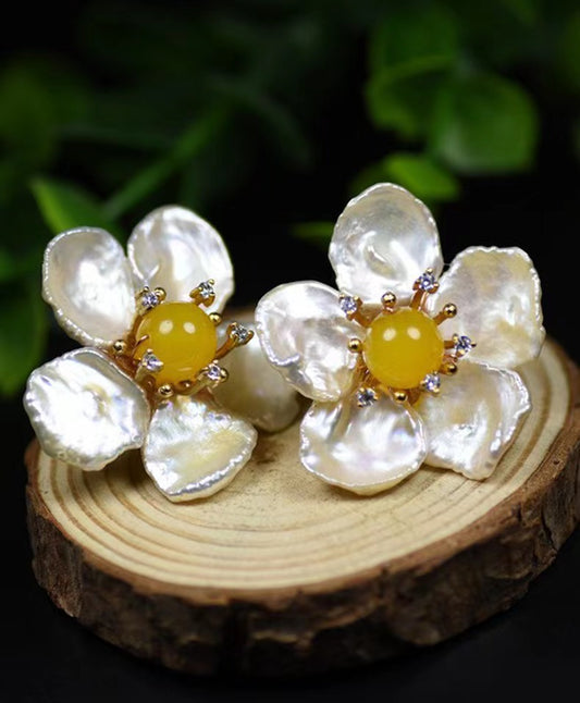Genuine Freshwater Baroque Pearl Sun Flower Earrings (Limited Edition)