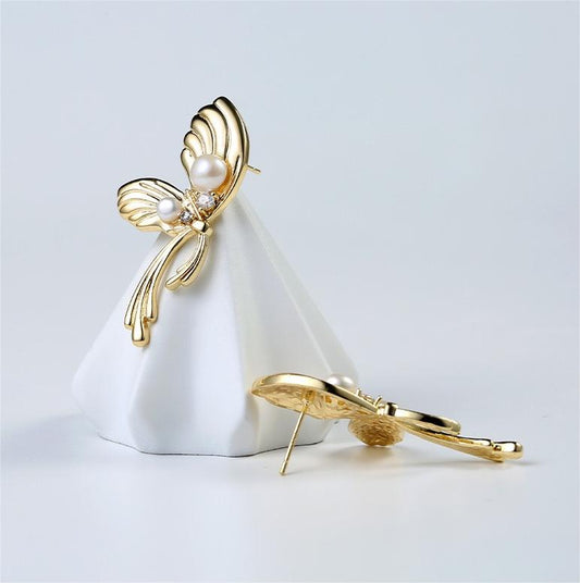 Genuine Freshwater Pearl Happy Butterfly Earrings
