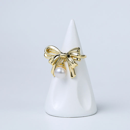 Genuine Freshwater Pearl Happy Bowtie Ring