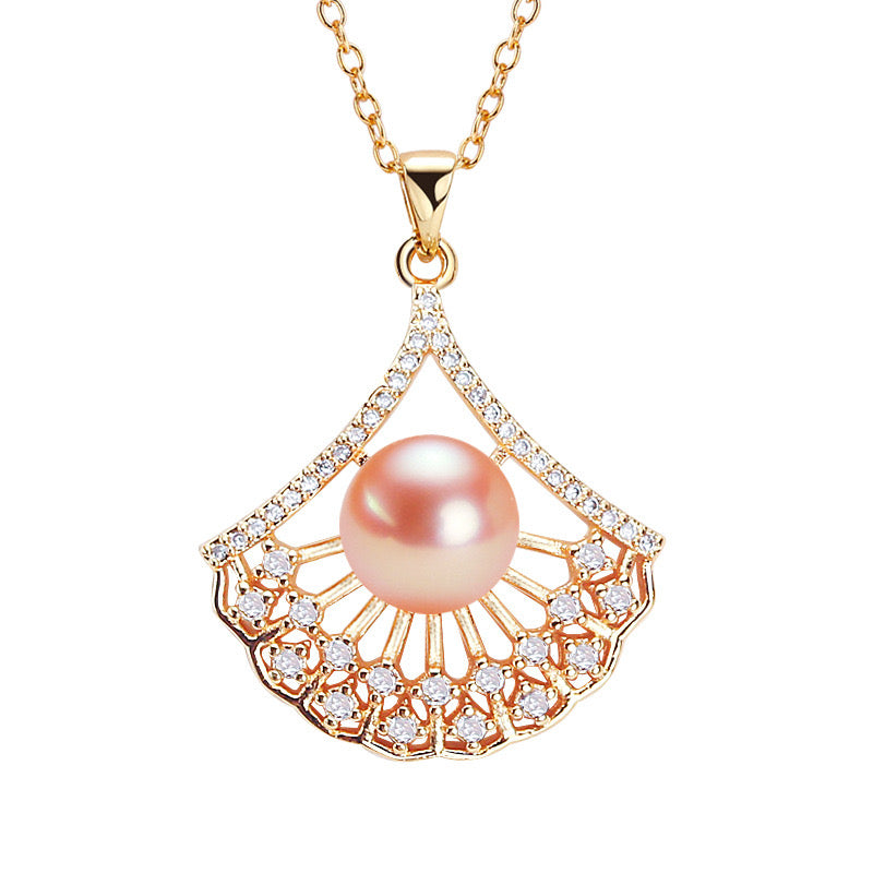 Brass Plated with 18K Gold Genuine Freshwater Pearl Ocean Fan Necklace