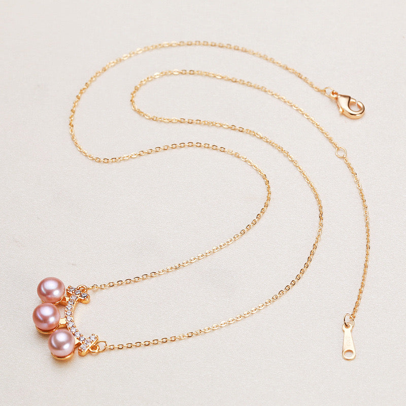 Brass Plated with 18K Gold Genuine Freshwater Pearl Angel Smile Necklace
