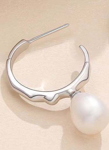 Genuine Baroque Pearl Solid S925 Silver Bird Bone Earrings
