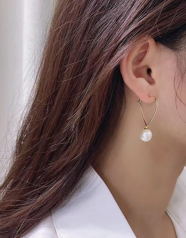 Genuine Baroque Pearl Solid S925 Silver Heart Earrings