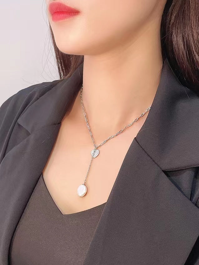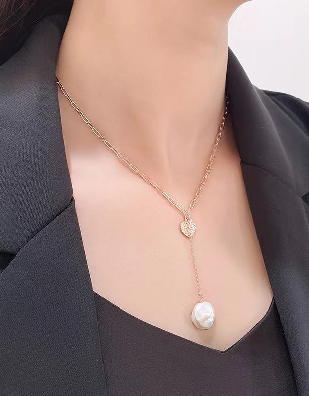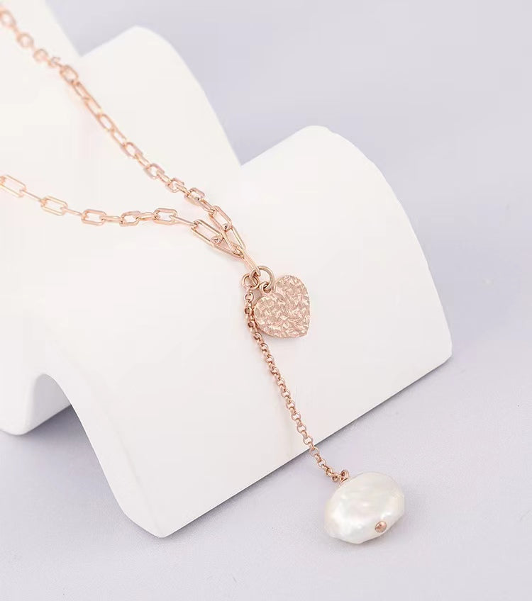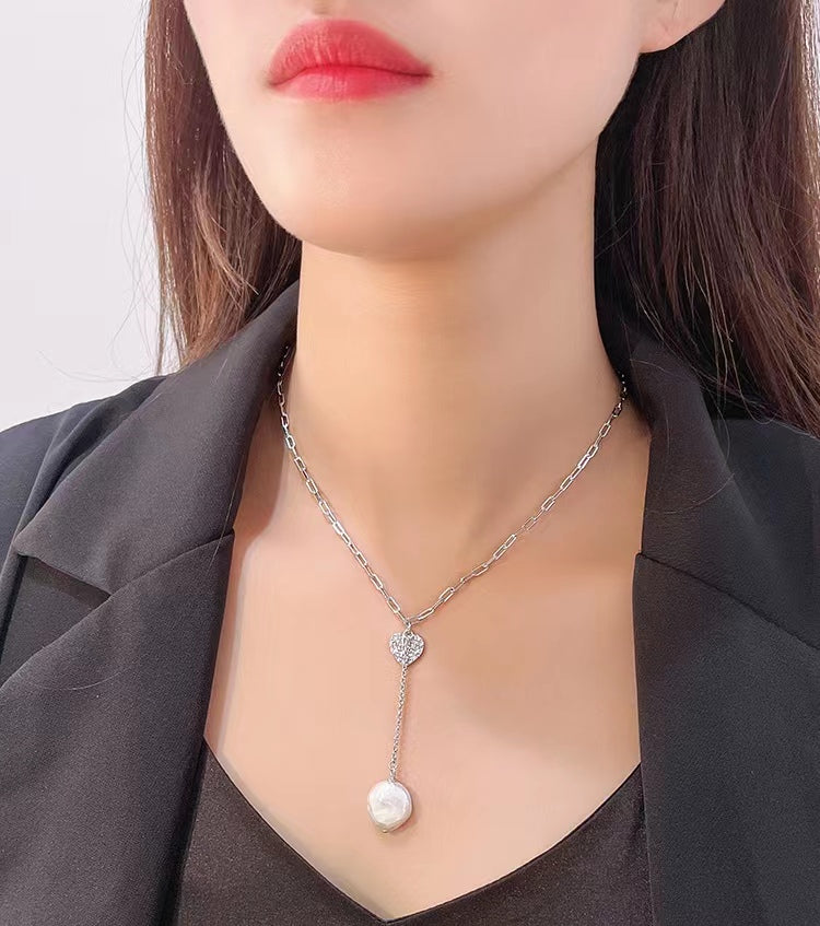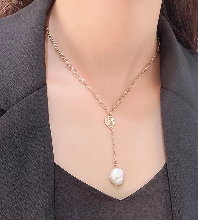 Genuine Baroque Pearl Solid S925 Silver Lucky Heart Necklace