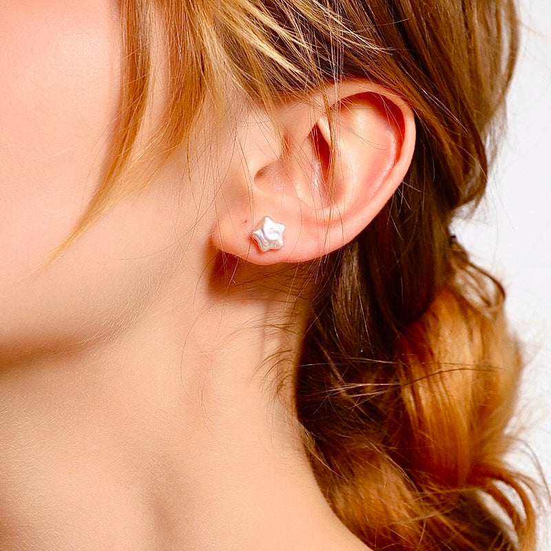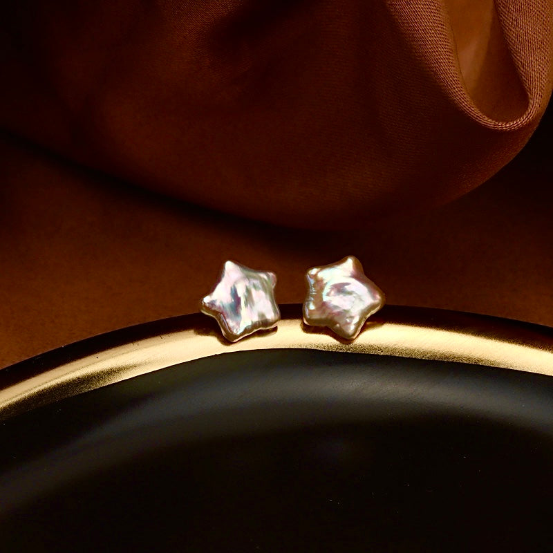 Genuine Freshwater Baroque Pearl Cute Star Earrings