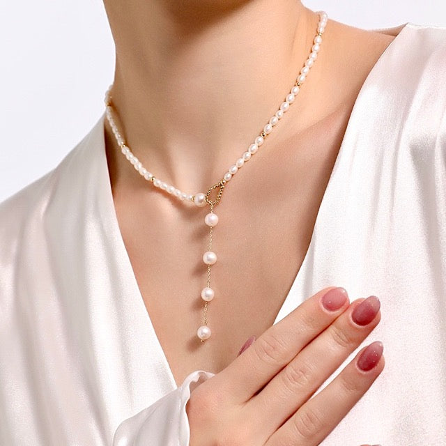 This enchanting necklace features genuine freshwater baroque pearls of exceptional quality to bring a touch of luxury to your wardrobe. Crafted from the finest materials, each pearl has been hand-selected for its unmatched luster and radiant beauty. Treat yourself to the Eden Necklace for an extra special touch of elegance.