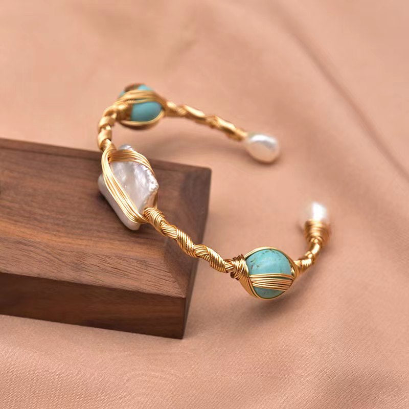 Genuine Freshwater Baroque Pearl Turquoise Bracelet (Limited Edition)