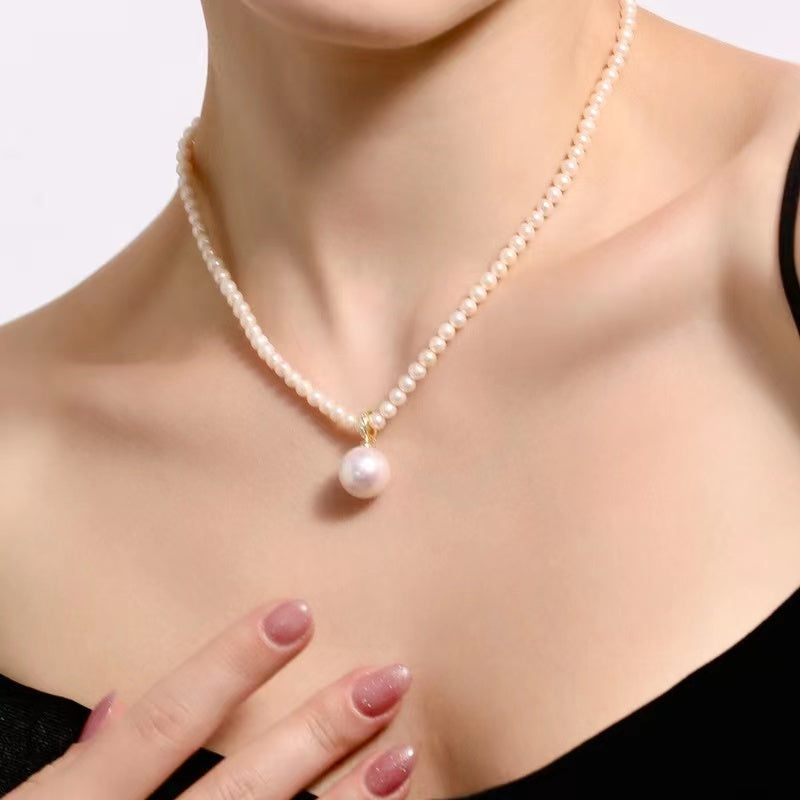 The Genuine Freshwater Baroque Quinn Necklace is crafted with a unique blend of freshwater cultured pearls for a touch of elegance. Carefully hand-knotted between each pearl, this necklace is made of the highest quality materials for a luxurious look and feel. The necklace features a perfect round pearl as pendant, adding extra elegance to this muse.