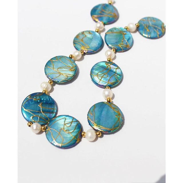Genuine Freshwater Blue Shell and Pearls Blue Fantasy Set