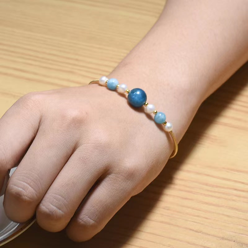 Genuine Freshwater Pearl & Aquamarine Bracelet (Limited Edition)