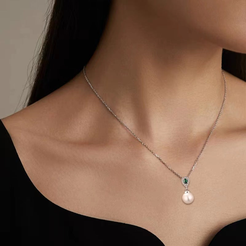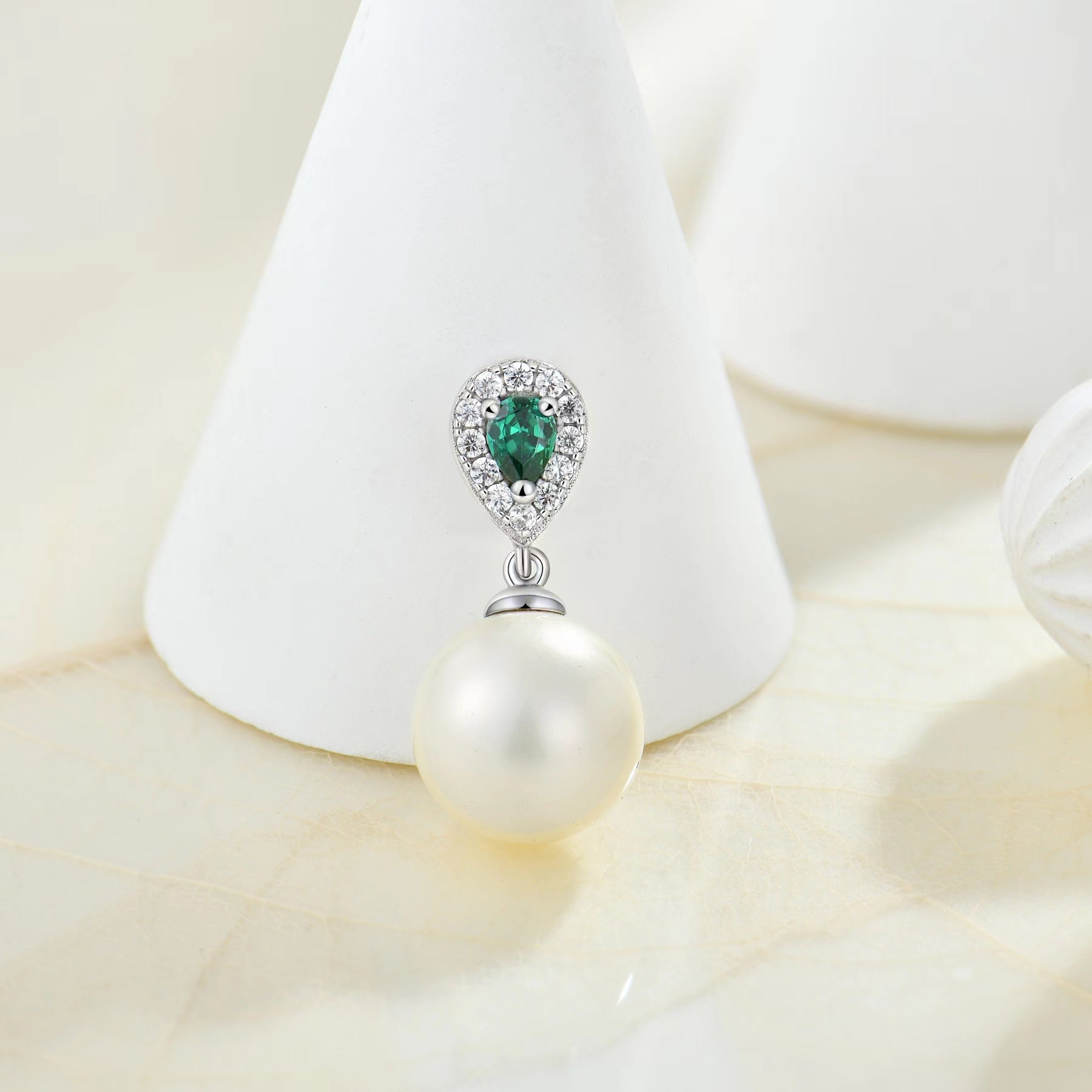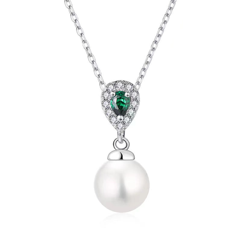 Genuine Freshwater Pearl Emerald Tear Necklace