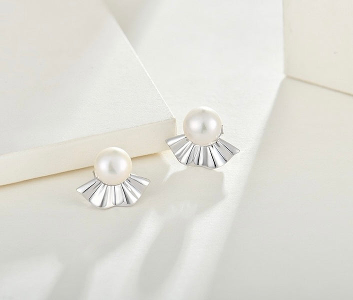 Genuine Freshwater Pearl Japanese Fan Earrings