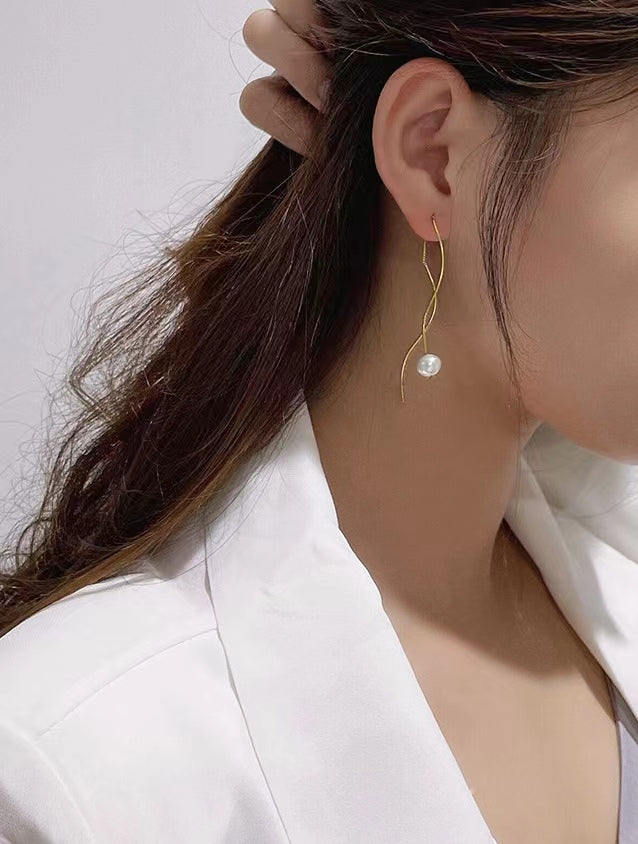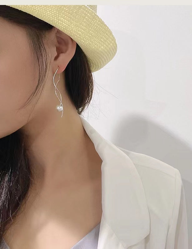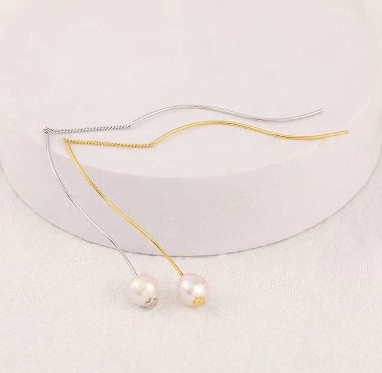 Genuine Freshwater Pearl Solid S925 Silver Streamline Earrings