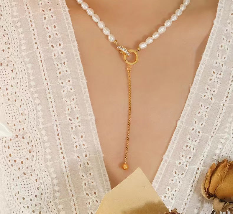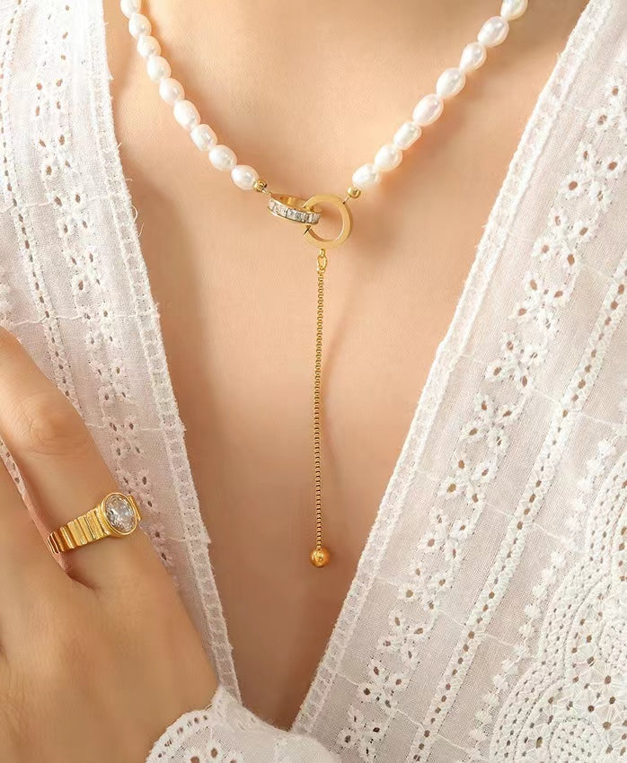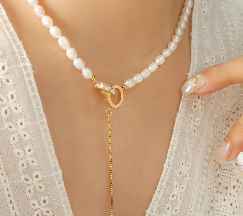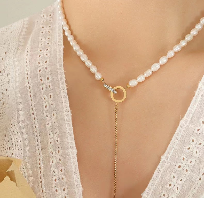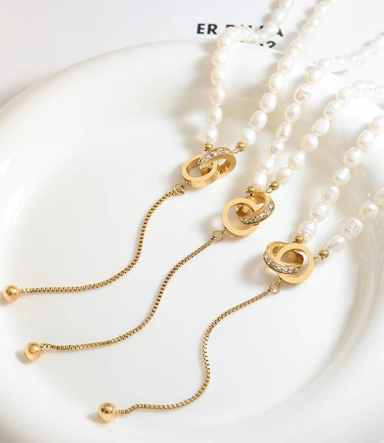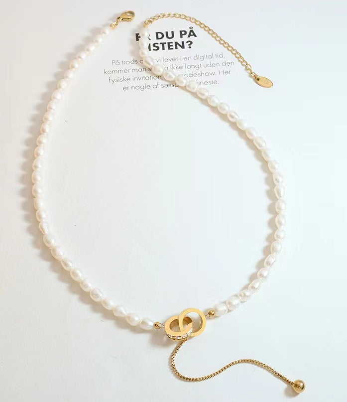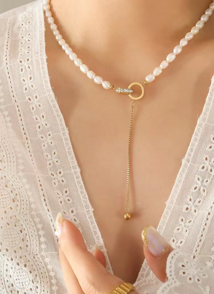 Genuine Freshwater Pearl Titanium Steel Circle of Hope Necklace