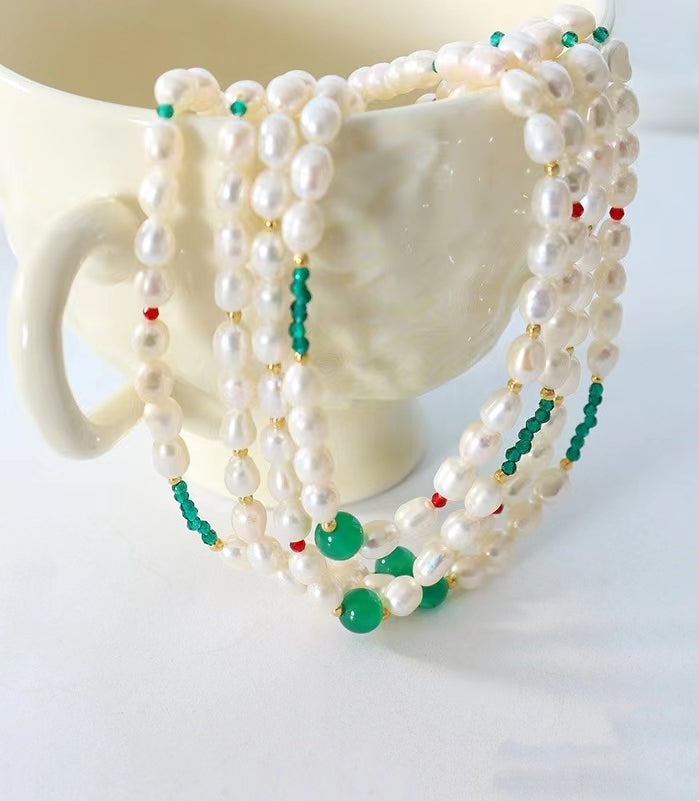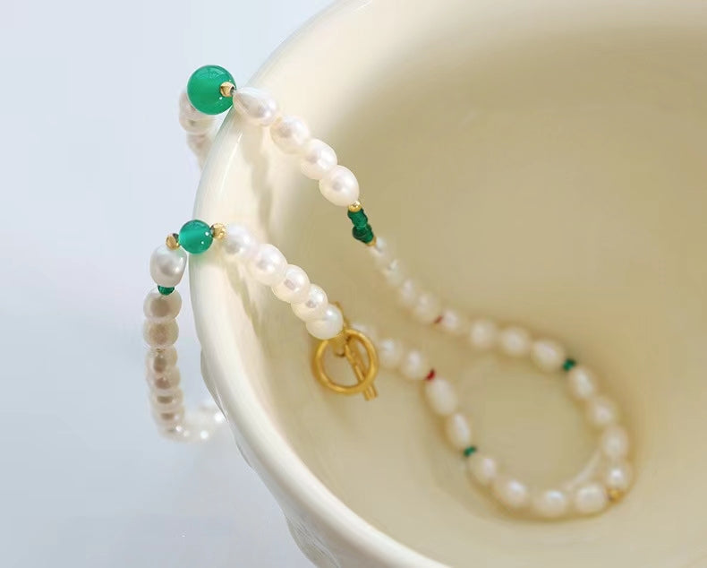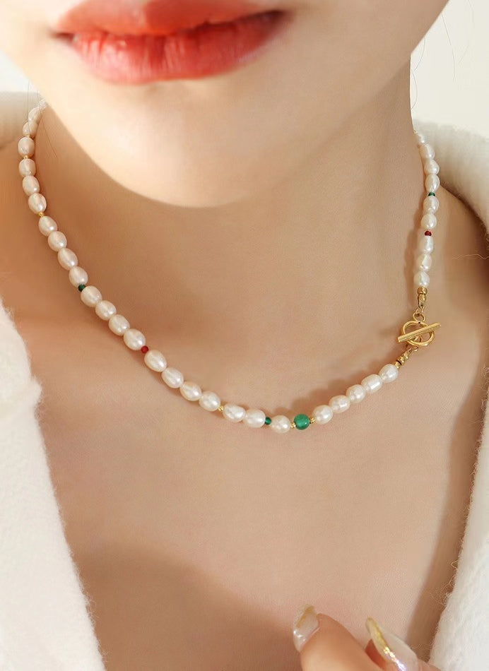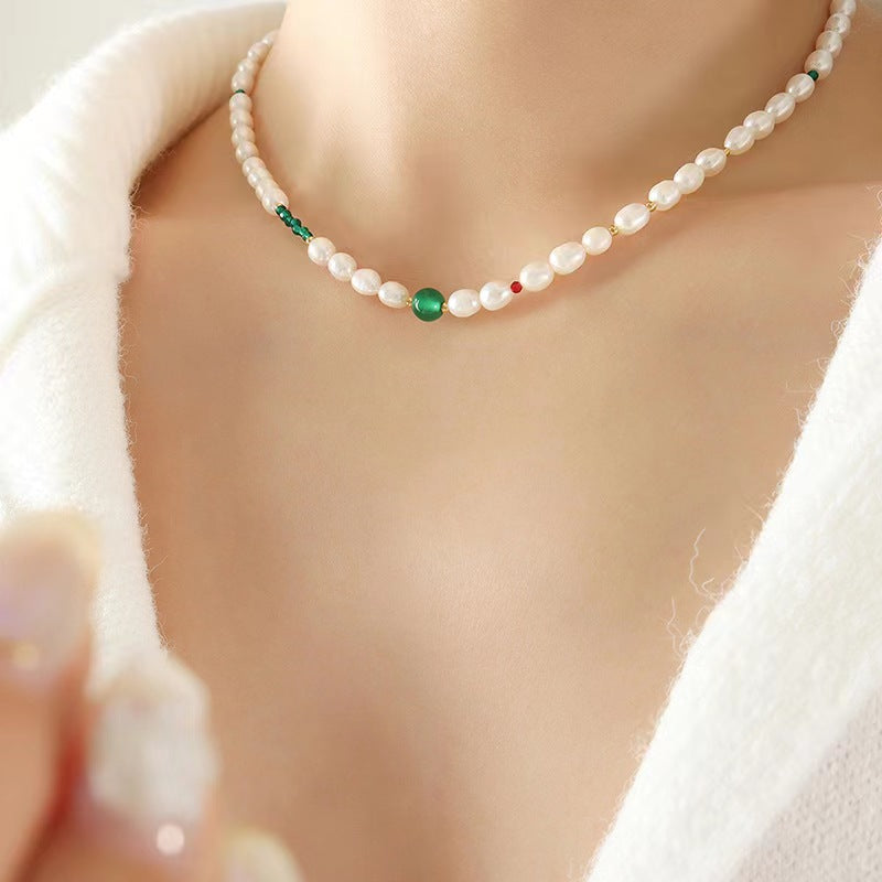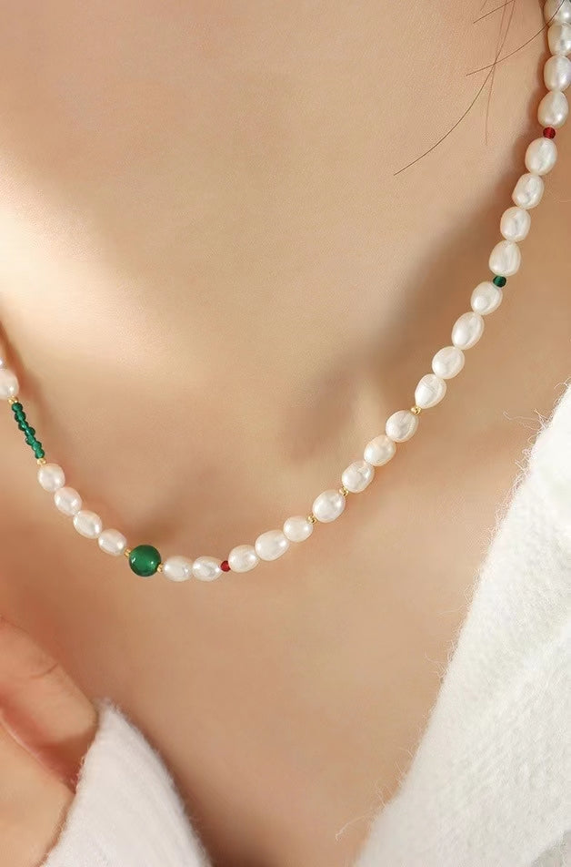 This genuine freshwater pearl titanium steel necklace features a unique green stone design, perfect for adding a touch of glamour to any outfit. Crafted with high-quality materials, this elegant piece is built to last and sure to be a favorite for years to come.