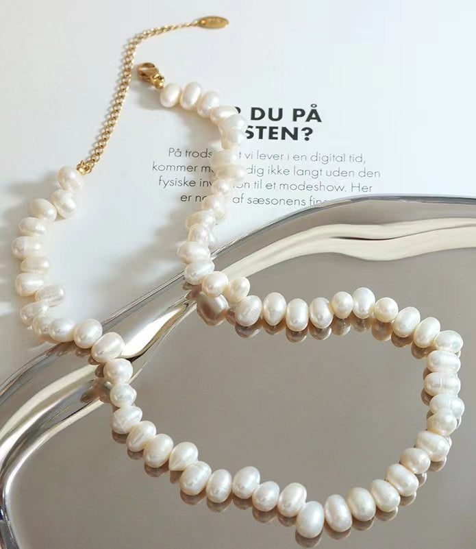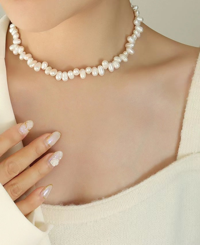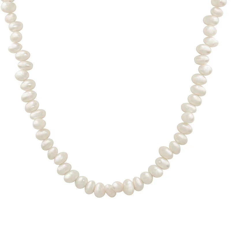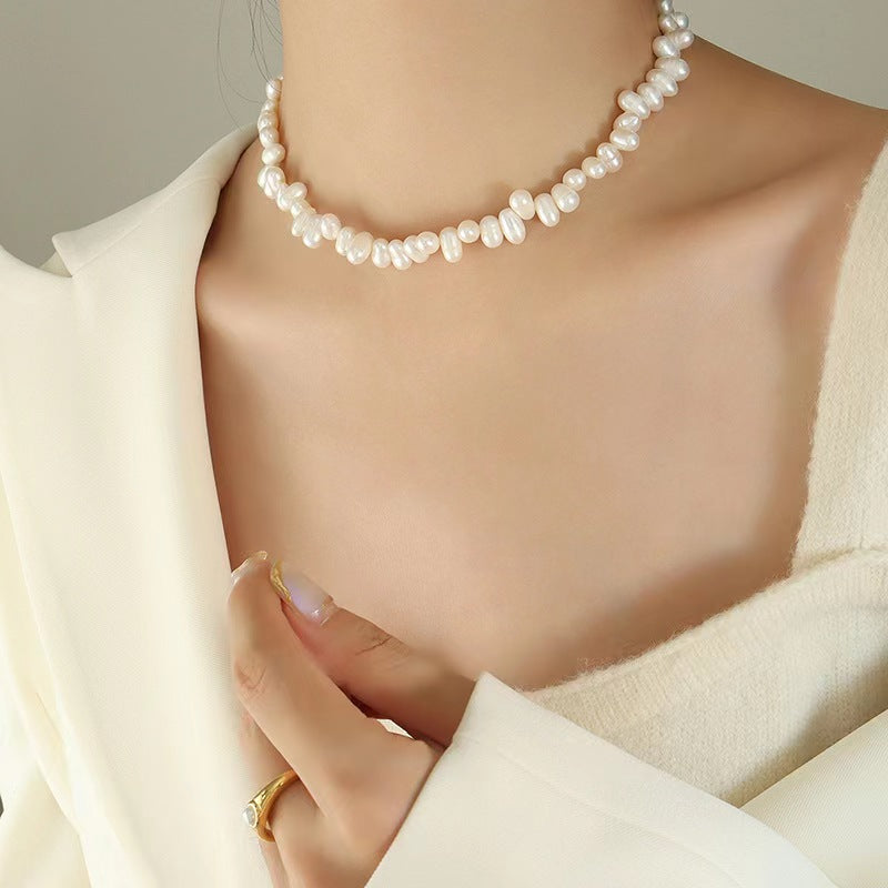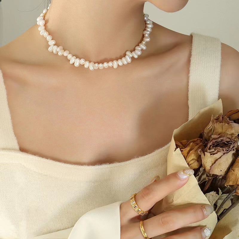 Genuine Freshwater Pearl Titanium Steel Rice Necklace