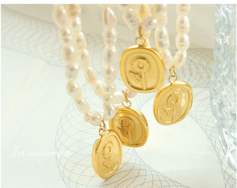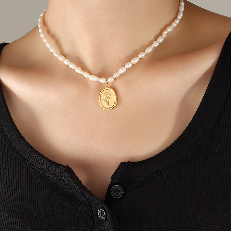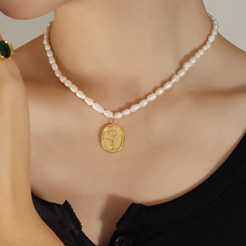 Genuine Freshwater Pearl Titanium Steel Rose Love Necklace