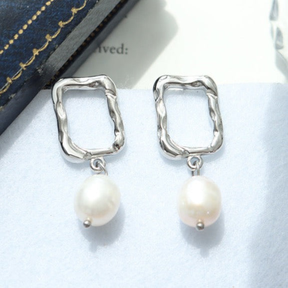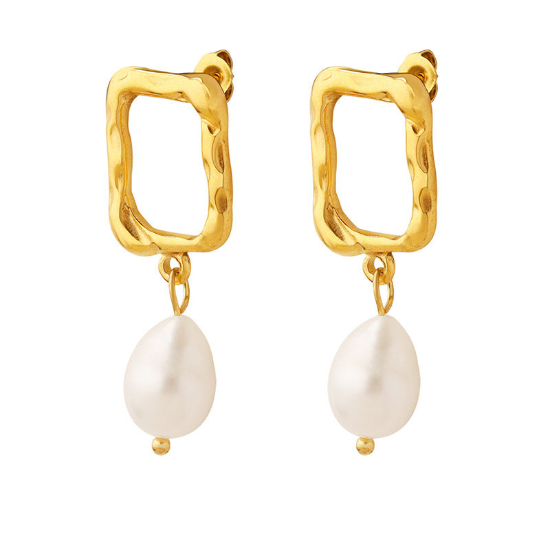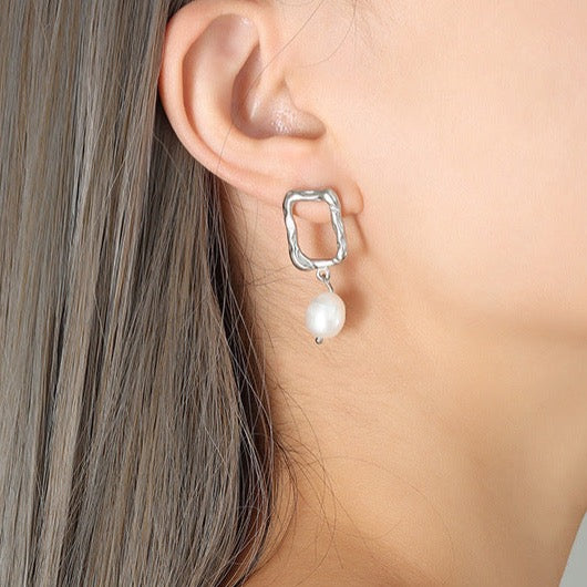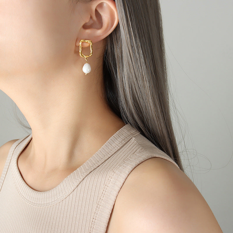 Genuine Freshwater Pearl Titanium Steel Holy Gate Earrings