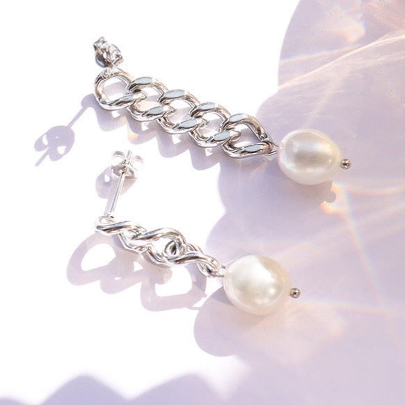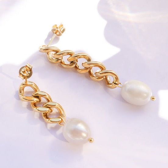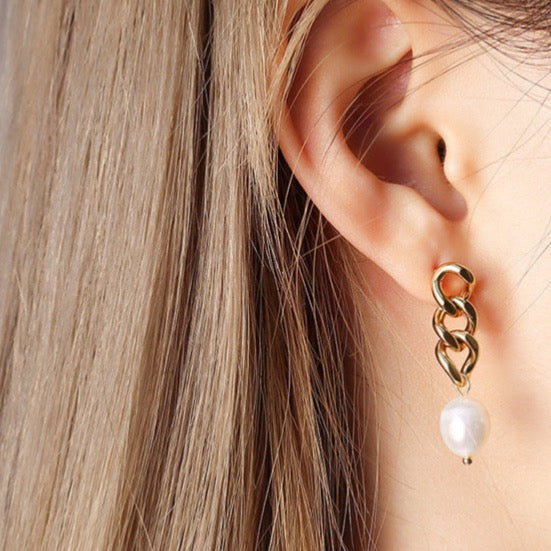 Crafted with titanium steel and genuine freshwater pearls, these irregular earrings are designed to be lightweight and comfortable yet resilient enough to last for years. The pearls give them a touch of elegance, making them perfect for any occasion.