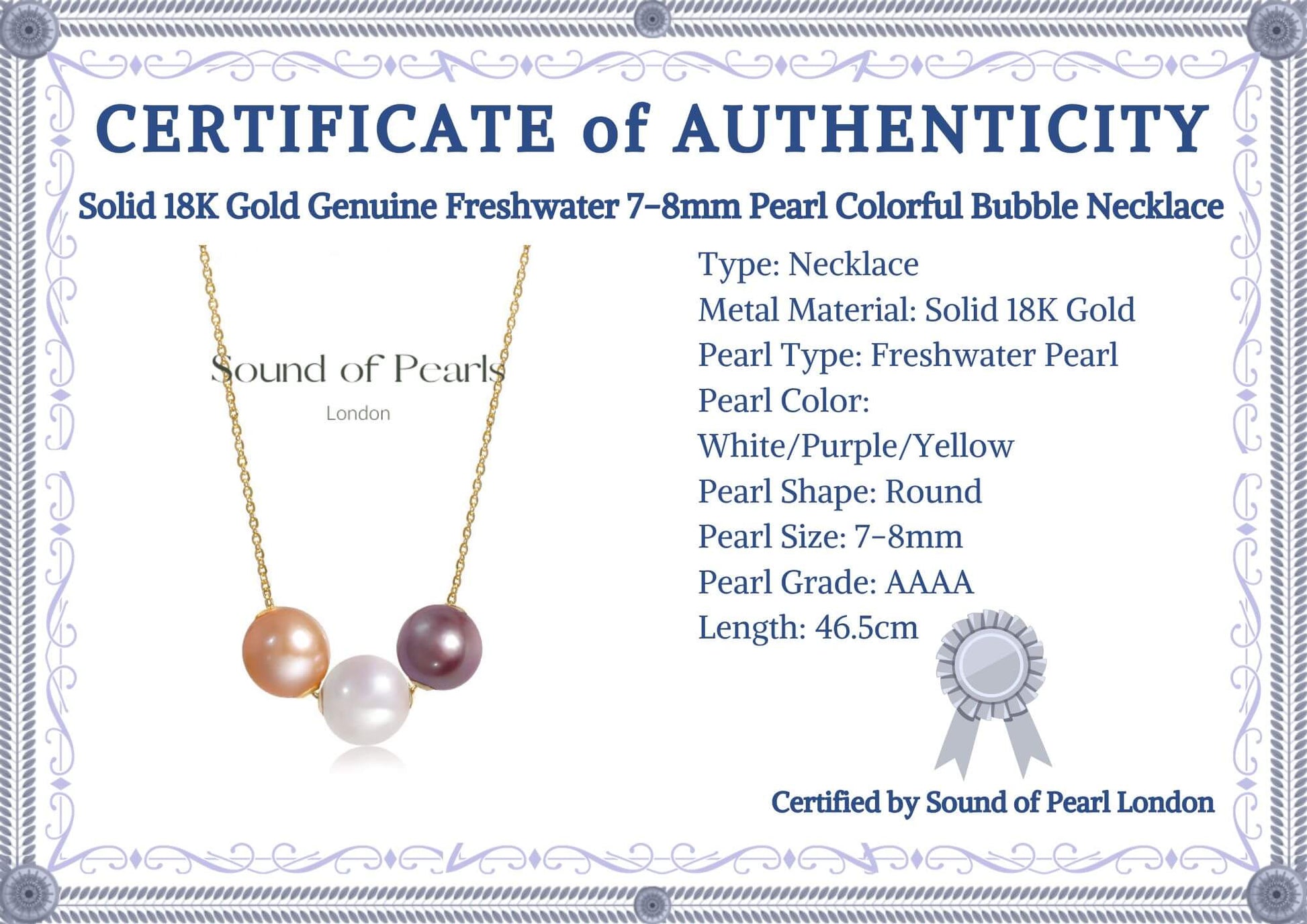 Solid 18K Gold Genuine Freshwater 7-8mm Pearl Colorful Bubble Necklace