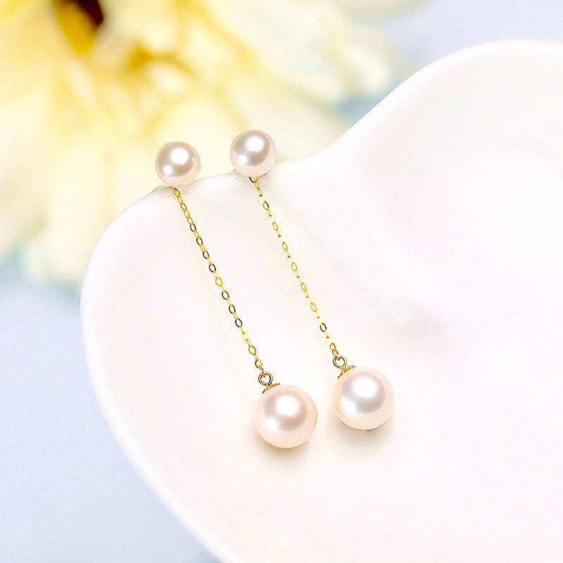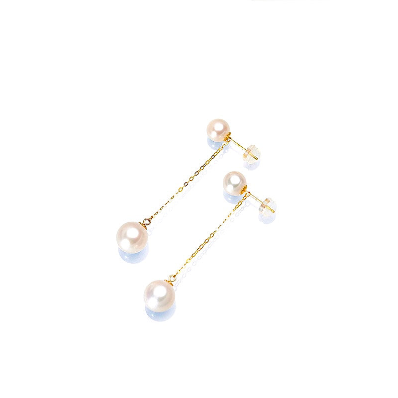 Solid 18K Gold Genuine Freshwater Pearl 2 Water droplets Earrings