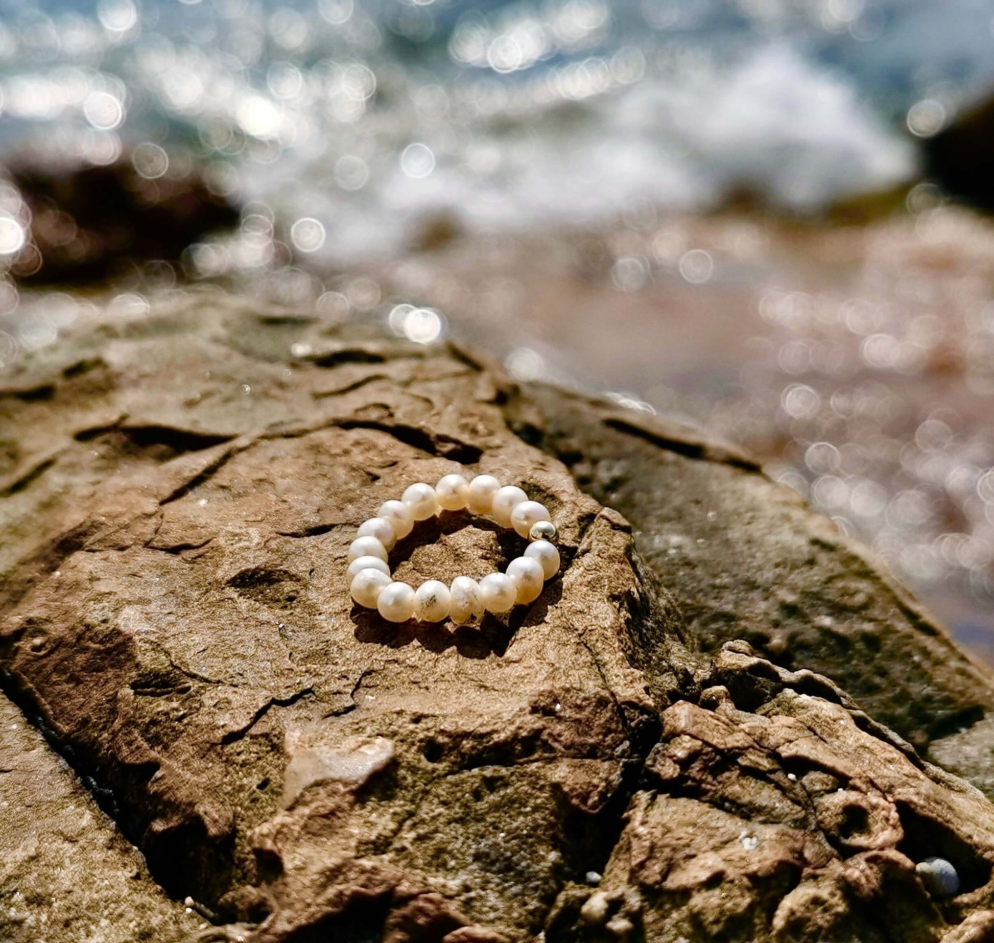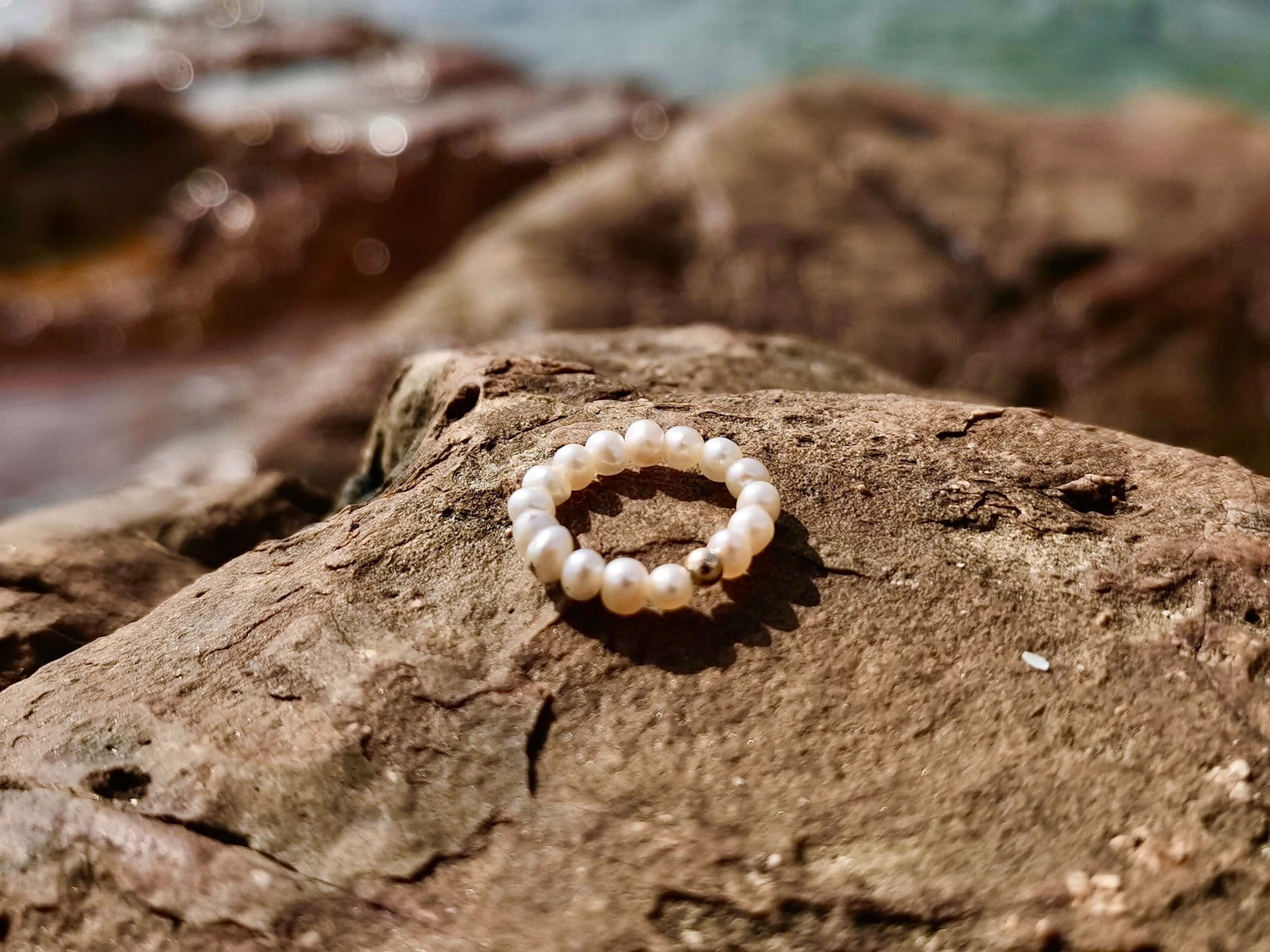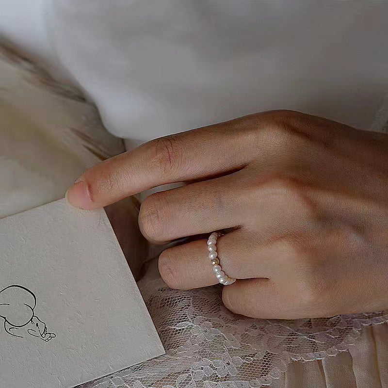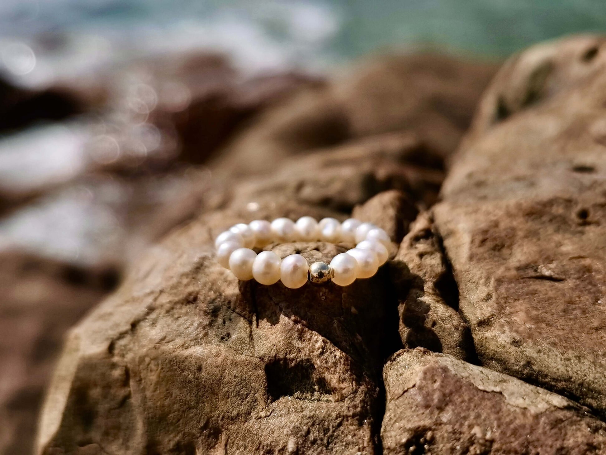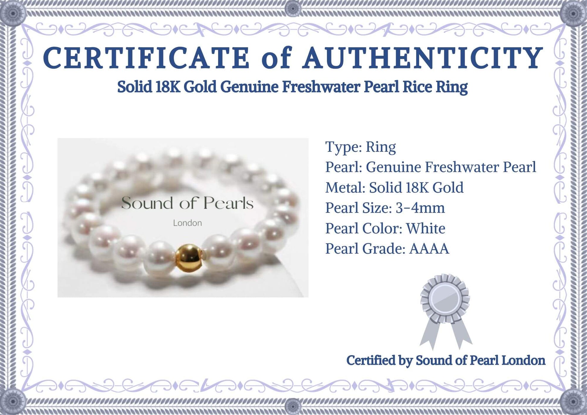 Solid 18K Gold Genuine Freshwater Pearl Rice Ring